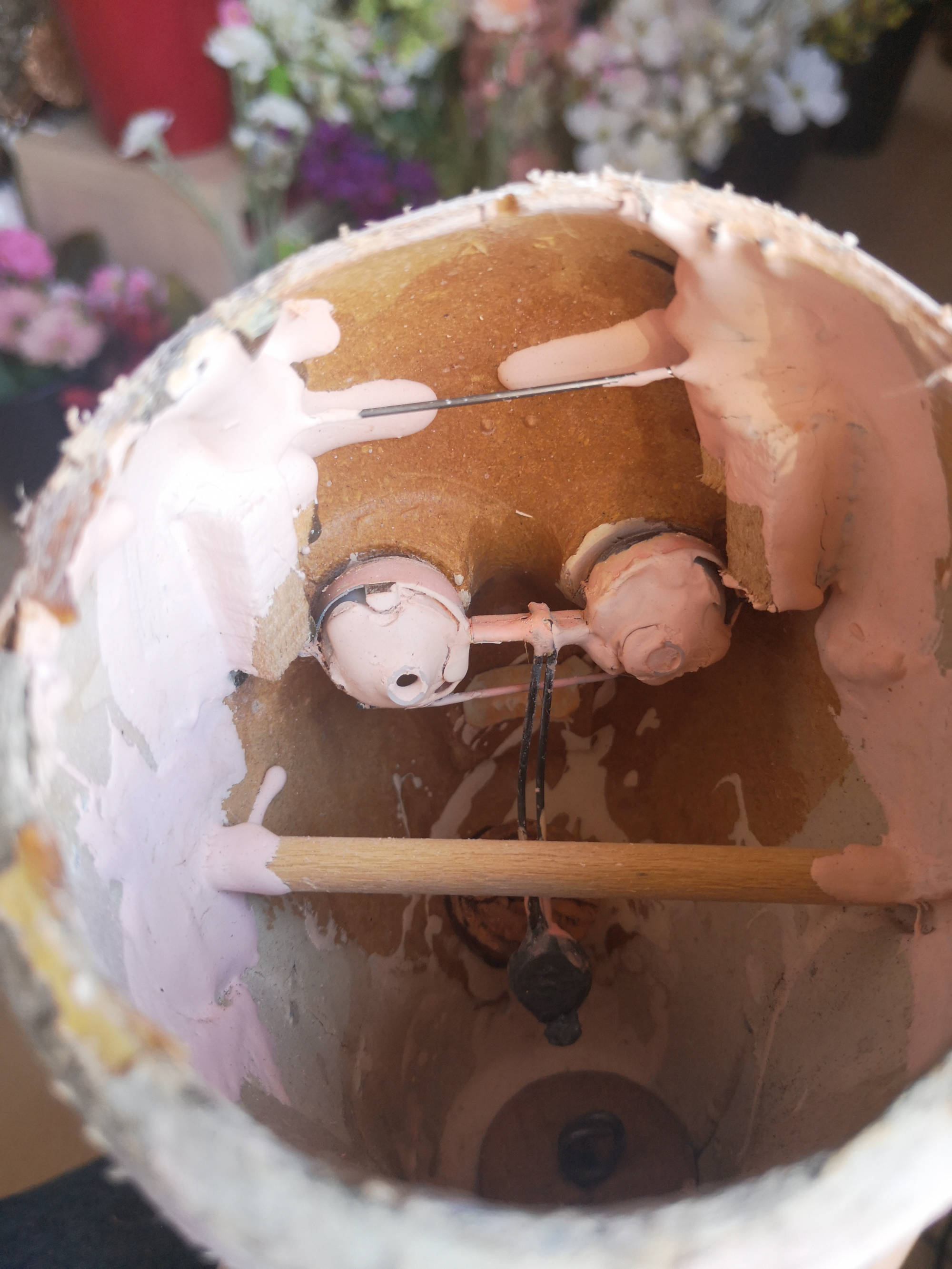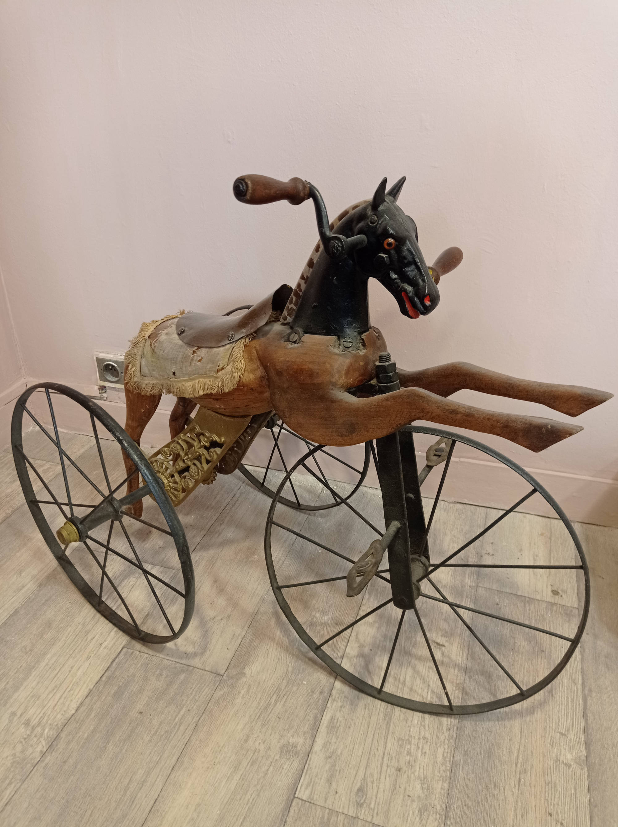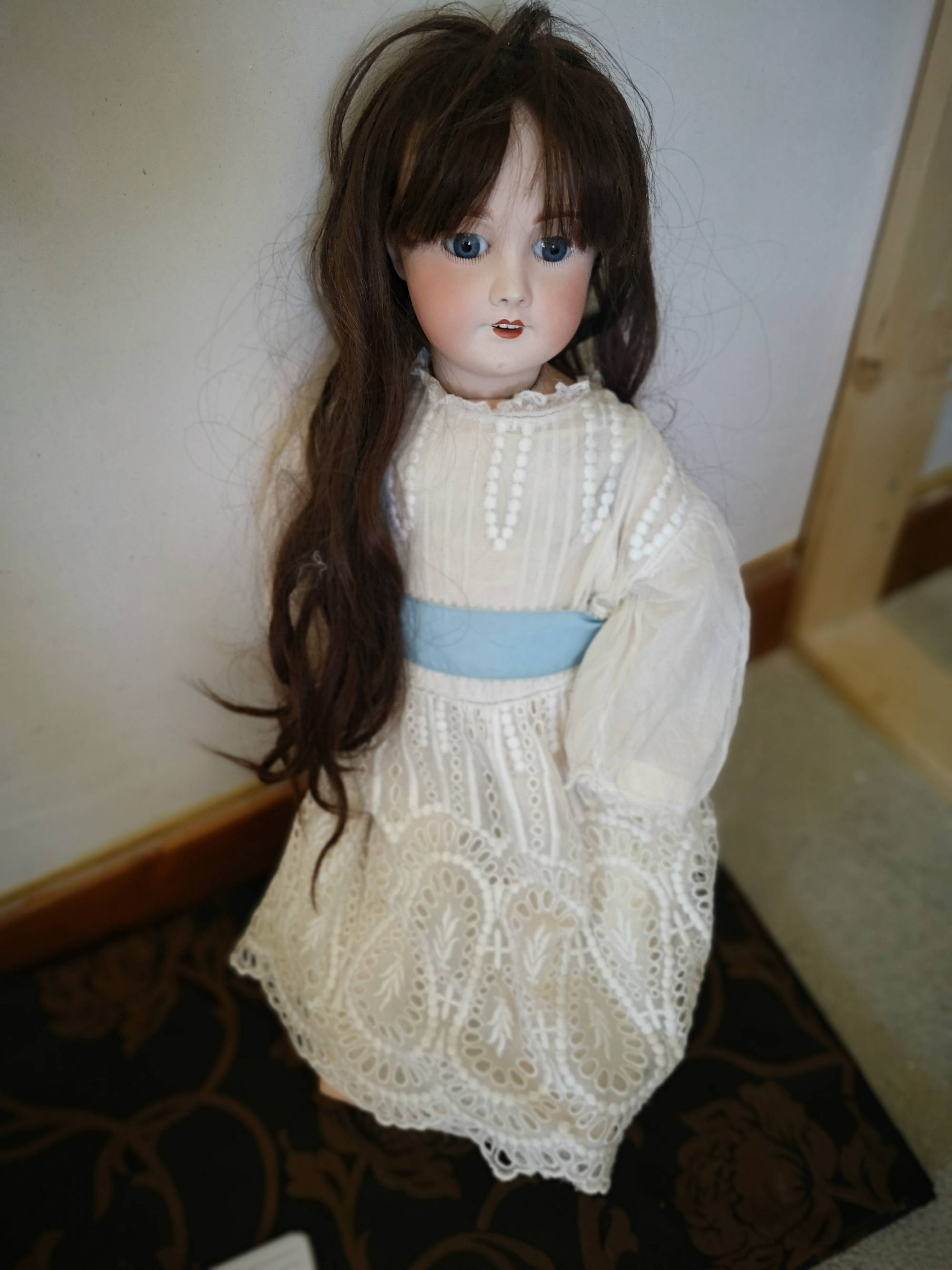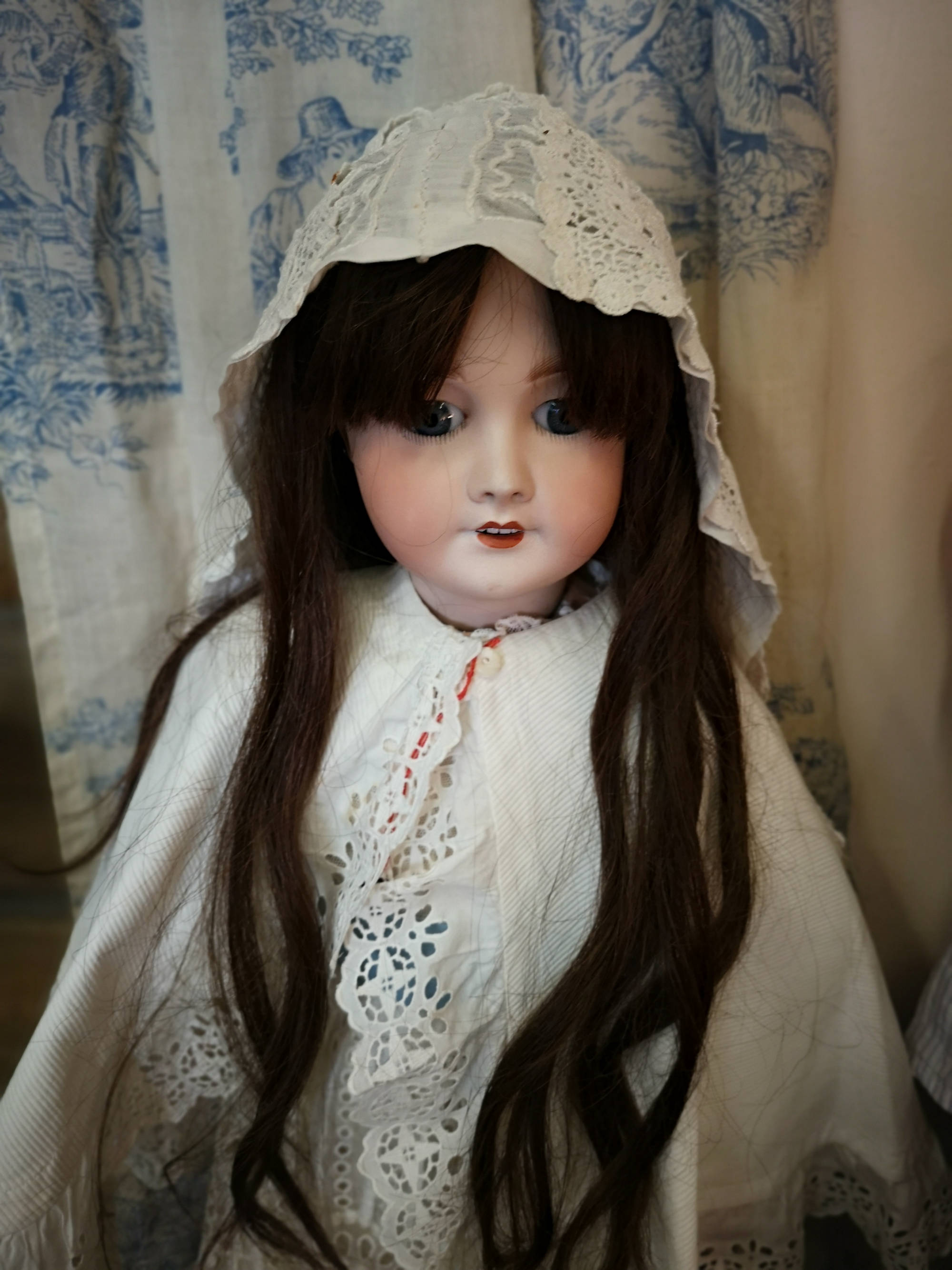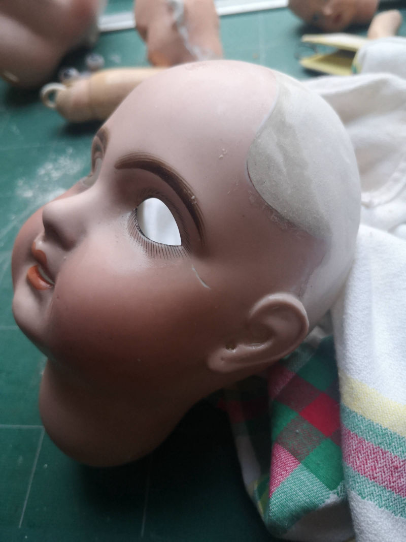 Restauration avec des garnitures anciennes, boutons, rubans, dentelles et avec des tissus anciens, soie, taffetas.